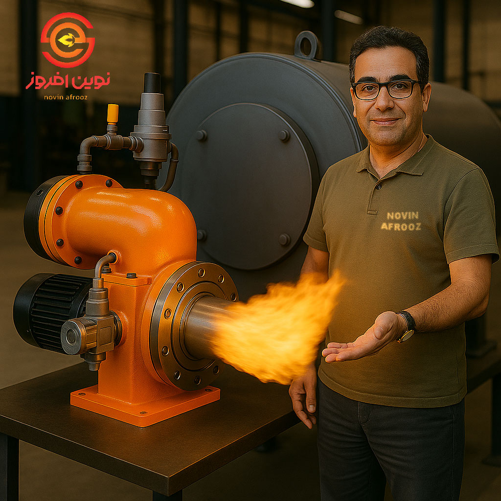 نوین افروز یکی از برندهای ایرانی فعال در حوزه تولید مشعل‌های صنعتی است که با بهره‌گیری از قطعات باکیفیت و طراحی مدرن، توانسته جایگاه مناسبی در بازار داخلی به‌دست آورد. مدل NA 1000 این شرکت با ظرفیت ۱,۰۰۰,۰۰۰ کیلوکالری در ساعت، گزینه‌ای مناسب برای کارخانجات متوسط تا بزرگ محسوب می‌شود و با قیمت حدودی ۸۰ میلیون تومان در بازار عرضه می‌گردد